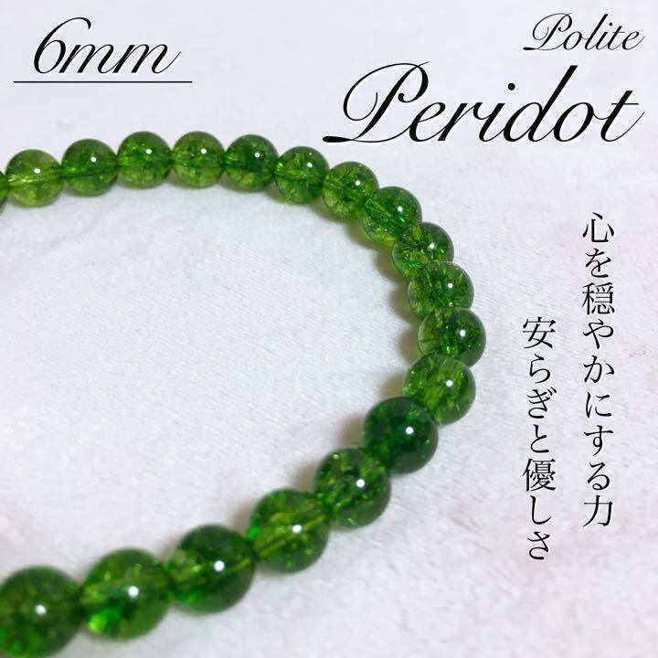 ブレスレット ペリドット 天然石 6mm カルセドニー 誕生石 緑 ハンドメイド